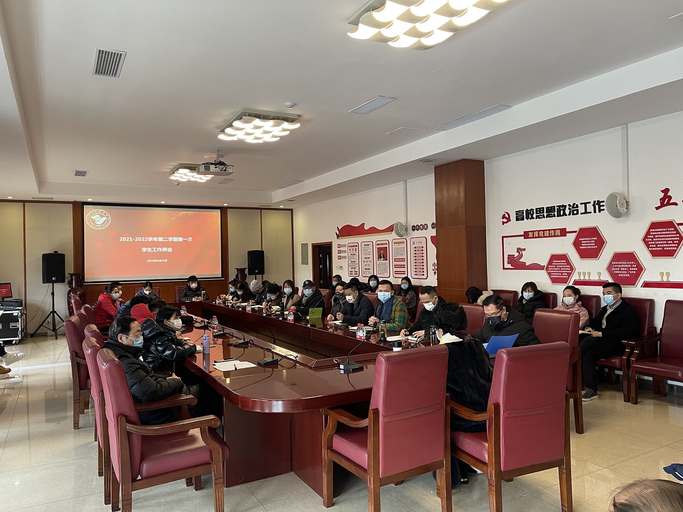 为做好开学阶段学生管理工作,同时做好疫情防控工作。2022年2月22日,学校同时召开了2021-2022学年第二学期第一次学生工作例会和书记例会。会议由党委副书记、副校长刘黎主持。学生工作部、校团委、保卫处、心理健康教育中心、各院系部党总支(支部)、书记、副书记参会。