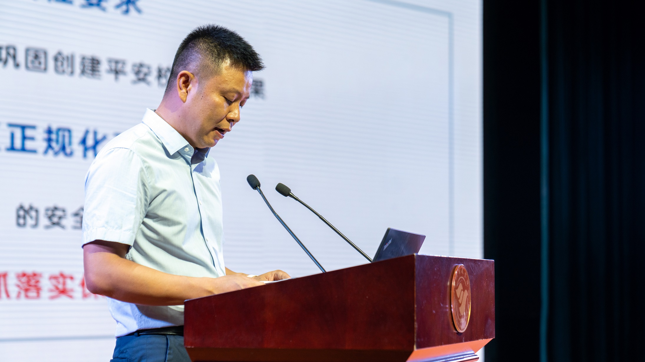首先,保卫处副处长黄华从上学期校园安全稳定工作回顾和本学期安全管理工作要点两个方面进行了发言。汇报了上学期保卫处在校园疫情防控、安全风险防范化解、消防安全、交通安全、校园施工和修缮安全管理、加强“三防”建设、安全教育宣传、户口迁移和征兵工作等九个方面的基本情况和进步。同时,针对本学期的校园安全管理要点,也提出了具体要求。安全管理举措不断完善,服务意识不断增强,保证了上学期校园整体安全稳定。