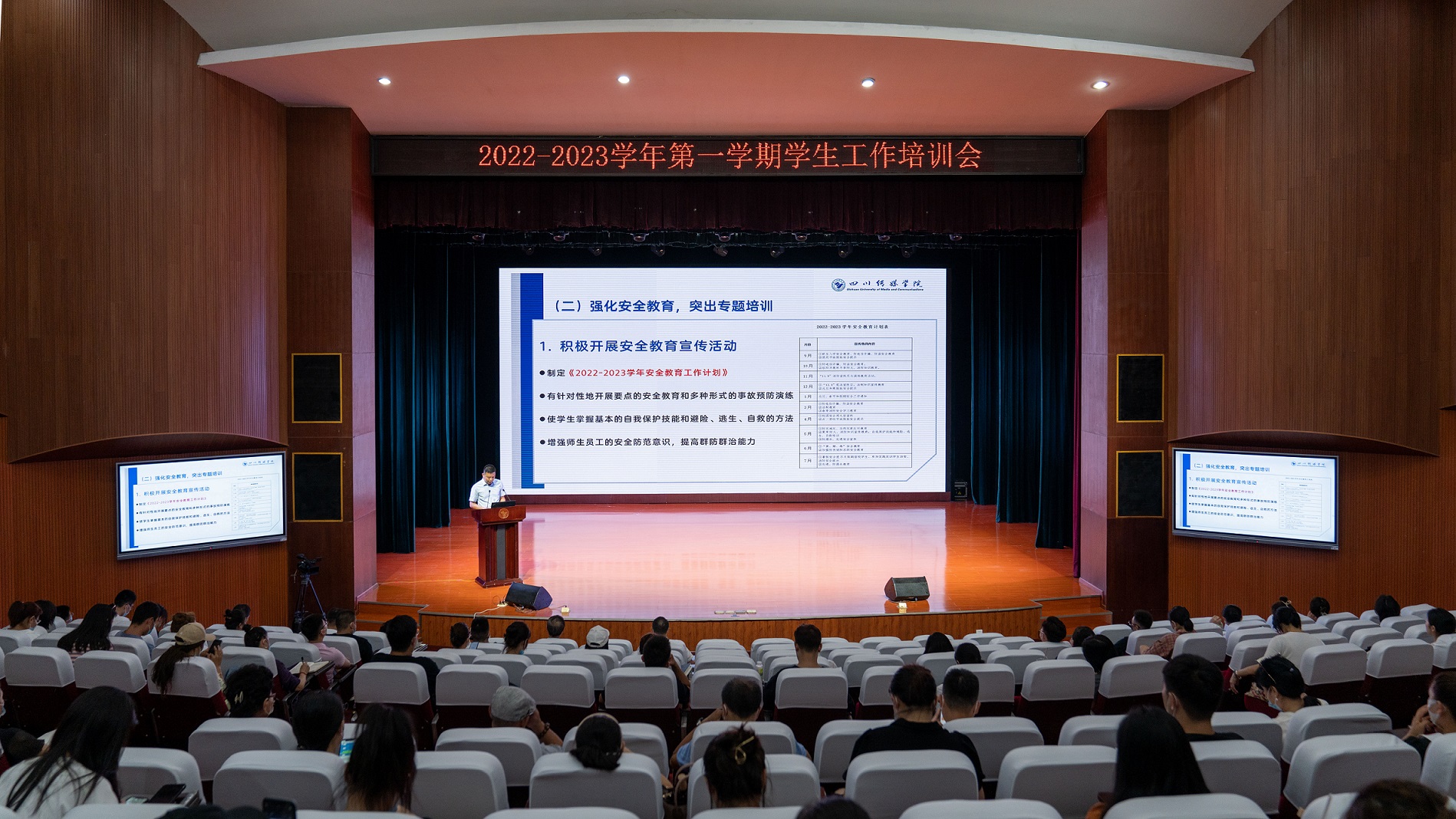 2022年8月23日下午,新学期学生工作培训会在艺术交流中心召开。校党委副书记、副校长刘黎、学生工作部(处)、保卫处、各学院系部党总支书记、副书记、全体辅导员参加了会议。会议由学生工作部(处)长唐杰主持。