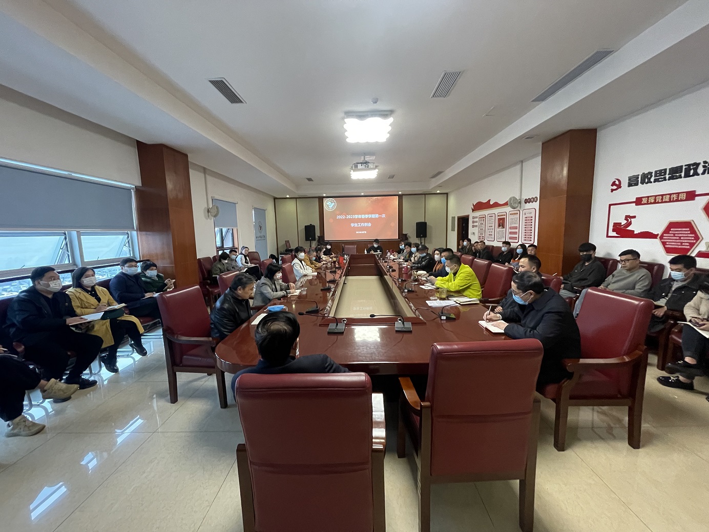 学生工作部(处)长唐杰对开学第一次主题班会的听课情况进行了梳理并且提出了意见。他还强调,新冠病毒肺炎实施“乙类乙管”后,要扎实搞好学生的各类校园文化活动,同时也要高度重视春季流行疾病以及流感,做好晨午检、因病缺勤等相关工作,避免聚集性爆发,教育学生在公共场合依然要戴好口罩、勤洗手、常通风。