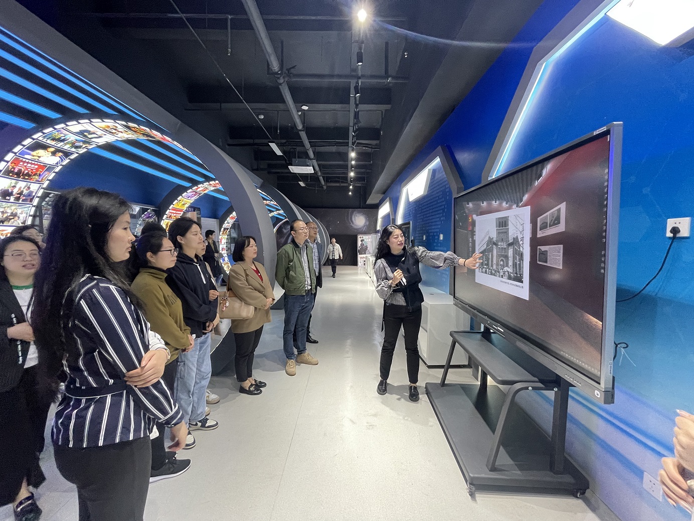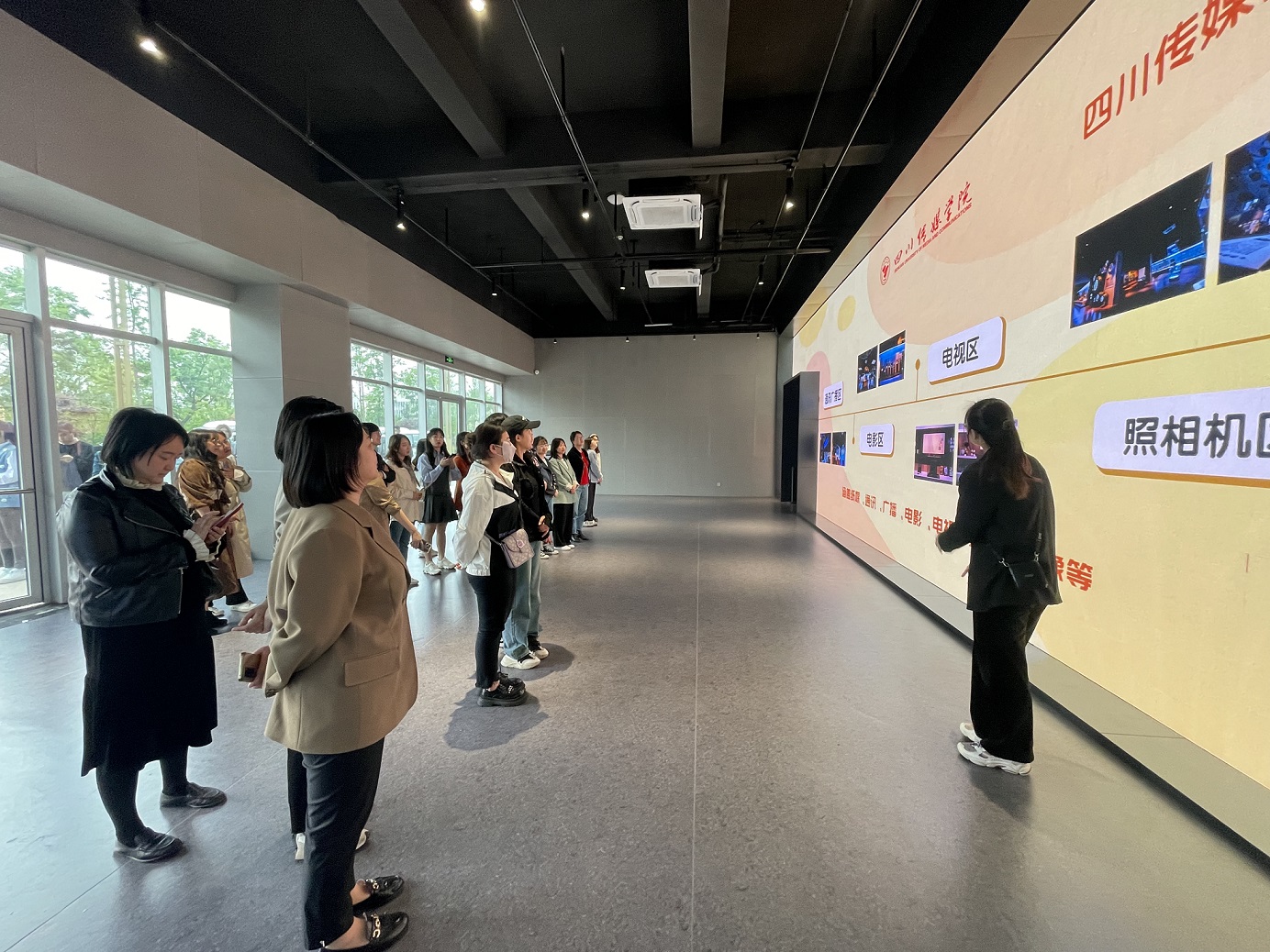 在唐杰部长的陪同下,老师们一行首先来到四川传媒学院西区,在成都影视硅谷参观了国家超高清基地、传媒博物馆以及“视界一号”摄影大棚,并在传媒博物馆合影留念。在参观过程中,川外成都学院的老师们对我校的办学特色有了一定的了解,也对整个传媒行业的发展史有了初步的认识。