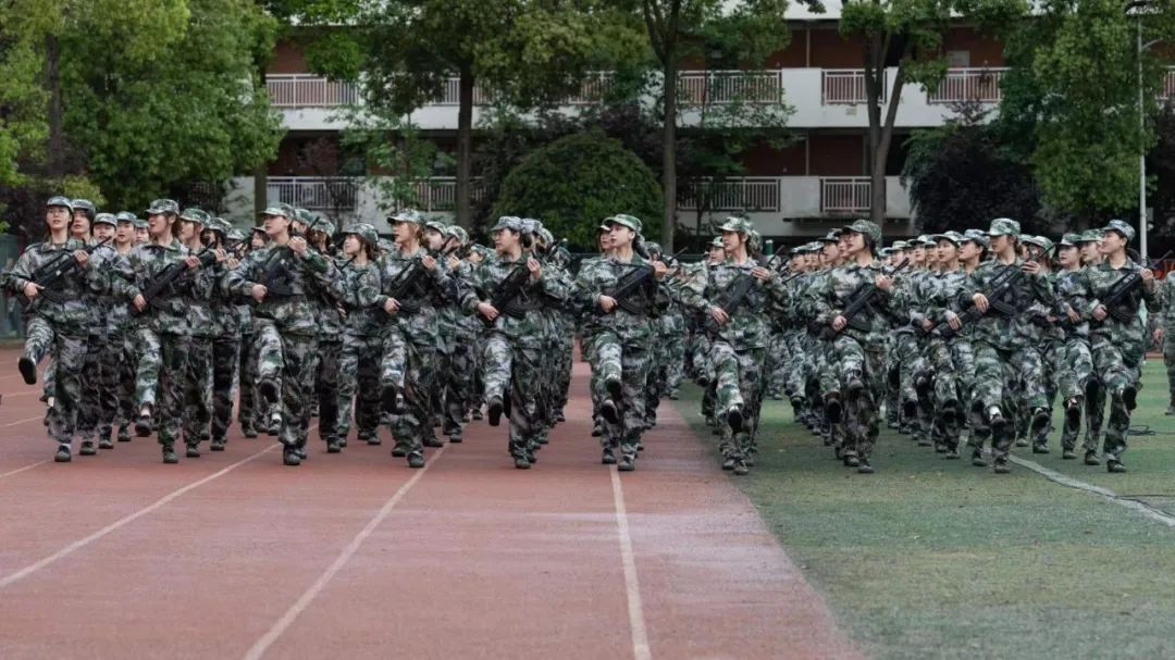 上午十点,伴随着迎风飘扬的国旗和庄严的国歌,2021级学生军训汇报大会正式开始。