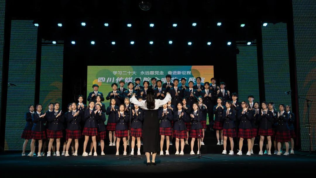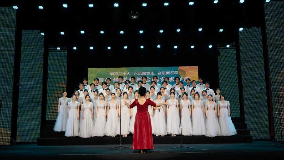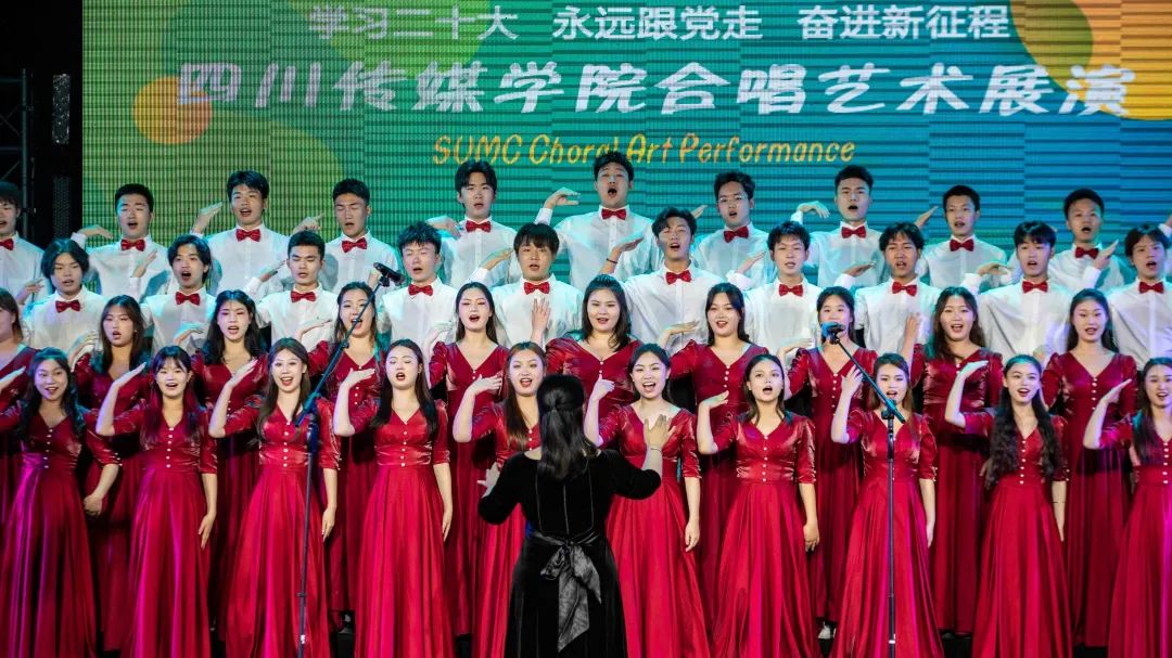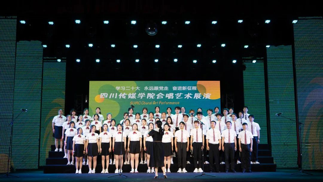 本次展演中,全校各院系均派出合唱队伍参演,分别演唱必选曲目校歌《梦想就在前方》及15首优秀合唱作品,曲目经典悠扬、风格多样,每一首曲目都将思想性、艺术性、观赏性融于一体,让现场的观众深切感受到合唱艺术丰富的表现力和强大的感染力,充分展现出四川传媒学院美育工作成果,展示出青年学生与时代同向、与祖国同行,胸怀家国、奋力筑梦的追求。