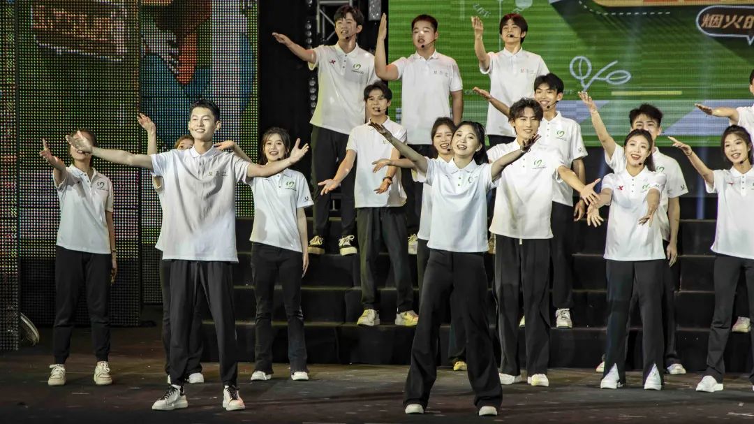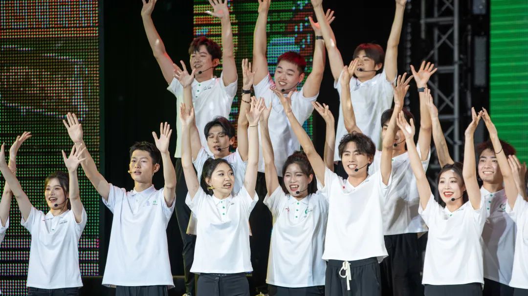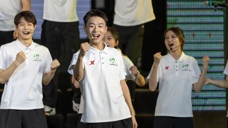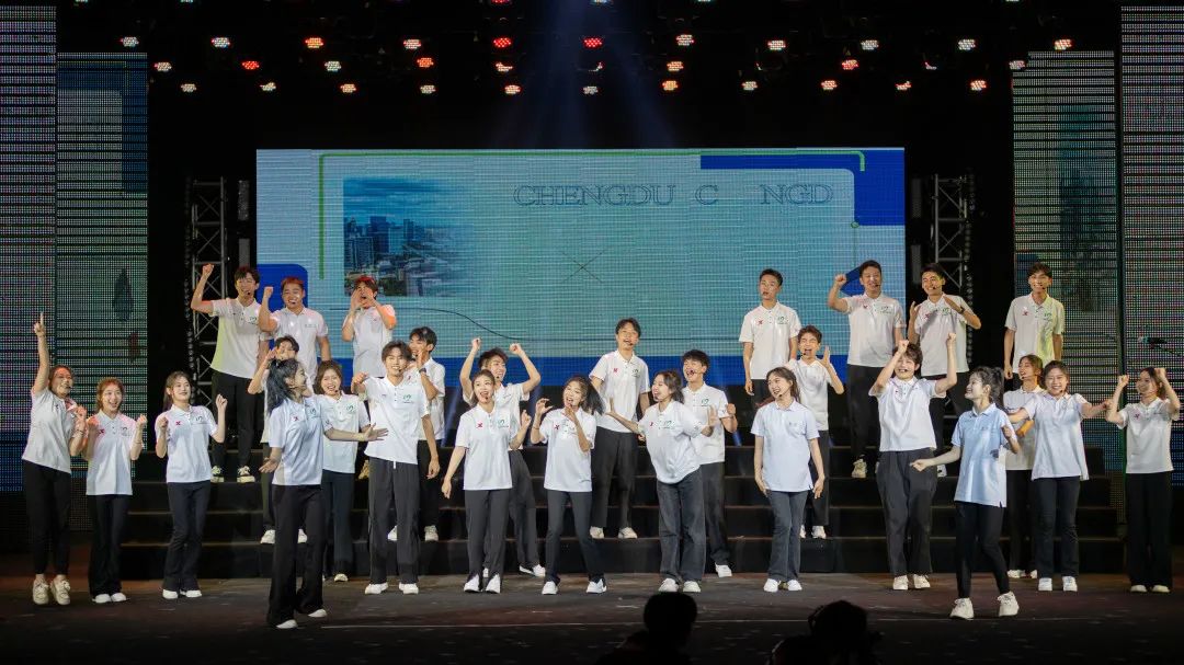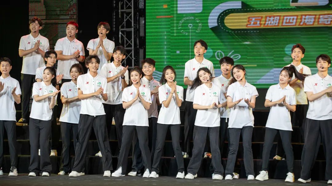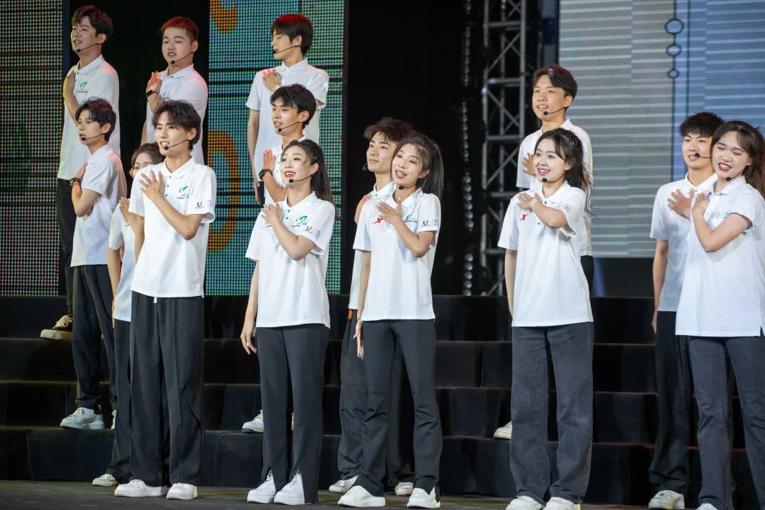 在各院系合唱队的精彩演唱之后,由我校成都大运会志愿者带来本场展演的特别节目——成都大运会志愿者主题歌曲《小青椒》表演。随着成都大运会脚步的临近,大运氛围逐渐浓厚,四名青春领唱人带领志愿者代表将大运精神和“成都成就梦想”唱响川传,融入校园中的每个角落,同学们用歌声演绎梦想、追逐梦想、成就梦想。
