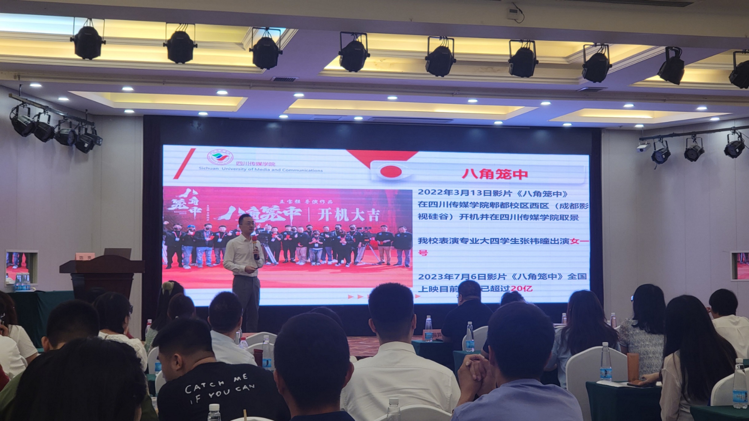 我校数字媒体与创意设计学院和智慧广电学院党委副书记陈亮以《参演电影里的思政教育》为题在论坛上做了专题报告,陈亮书记结合四川传媒学院“智慧导语辅导员工作室”建设,围绕我校学生参与《我的父亲焦裕禄》、《公诉精英》、《八角笼中》等大型电影、电视剧拍摄制作过程中的课程思政建设进行了深入讲解。他表示,主要从第二课堂入手,让思政教育入脑入心;以兴趣带信仰,打通思政教育的最后一公里;以工作室为抓手,让思政教育润物无声等三个方面进行了详细介绍,赢得了全场的阵阵掌声。