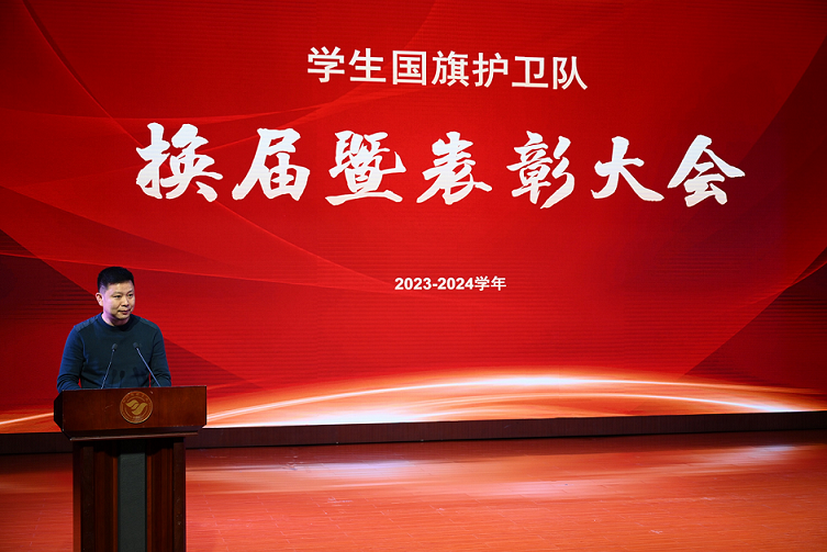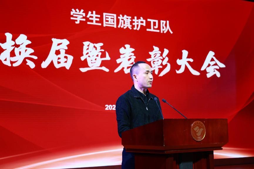 会议最后,学生工作部(处)长唐杰作了总结发言,首先对学生国旗护卫队这一年的表现给予了充分的肯定与赞赏,并且表达了对学生国旗护卫队未来的殷切期许和展望。其次,要求队员们培养良好的品德,勤奋学习,坚定正确的政治信念。最后也希望各位同学不忘初心,牢记使命。在各位校领导和老师们的支持下,在队员们不断地努力下,学生国旗护卫队的未来会发展得越来越好!