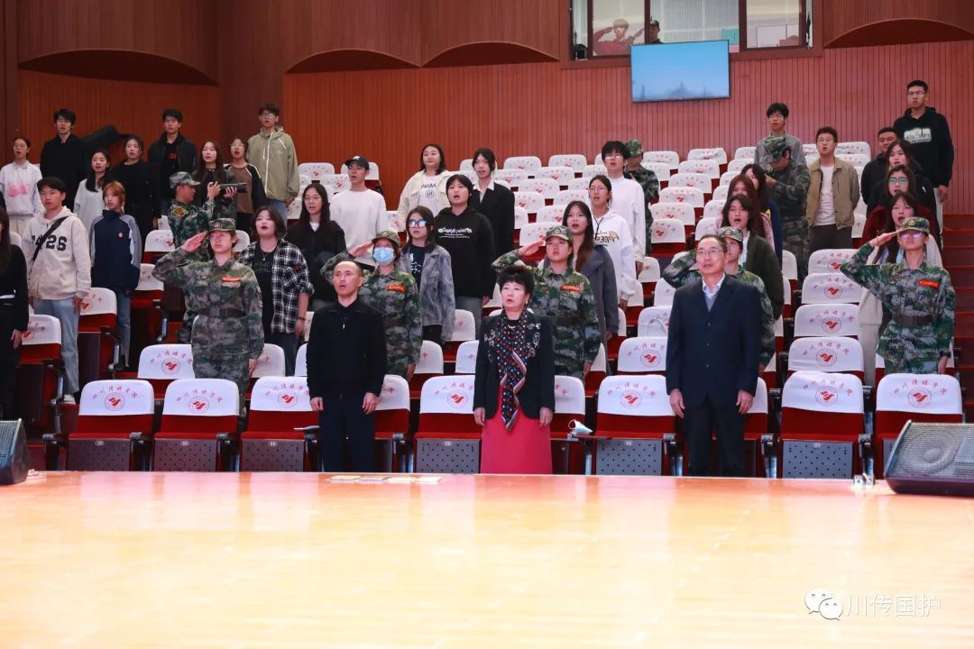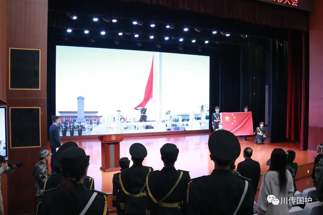 2023年10月18日上午,四川传媒学院学生国旗护卫队换届暨表彰大会在学校艺术交流中心顺利召开,学校理事长、常务副校长张书玉,学校党委副书记、副校长刘黎,学校党委常委、学生工作部(处)长唐杰出席会议。会议由保卫工作部(处)长黄华主持。在庄严的国歌声中,大会正式开始。
