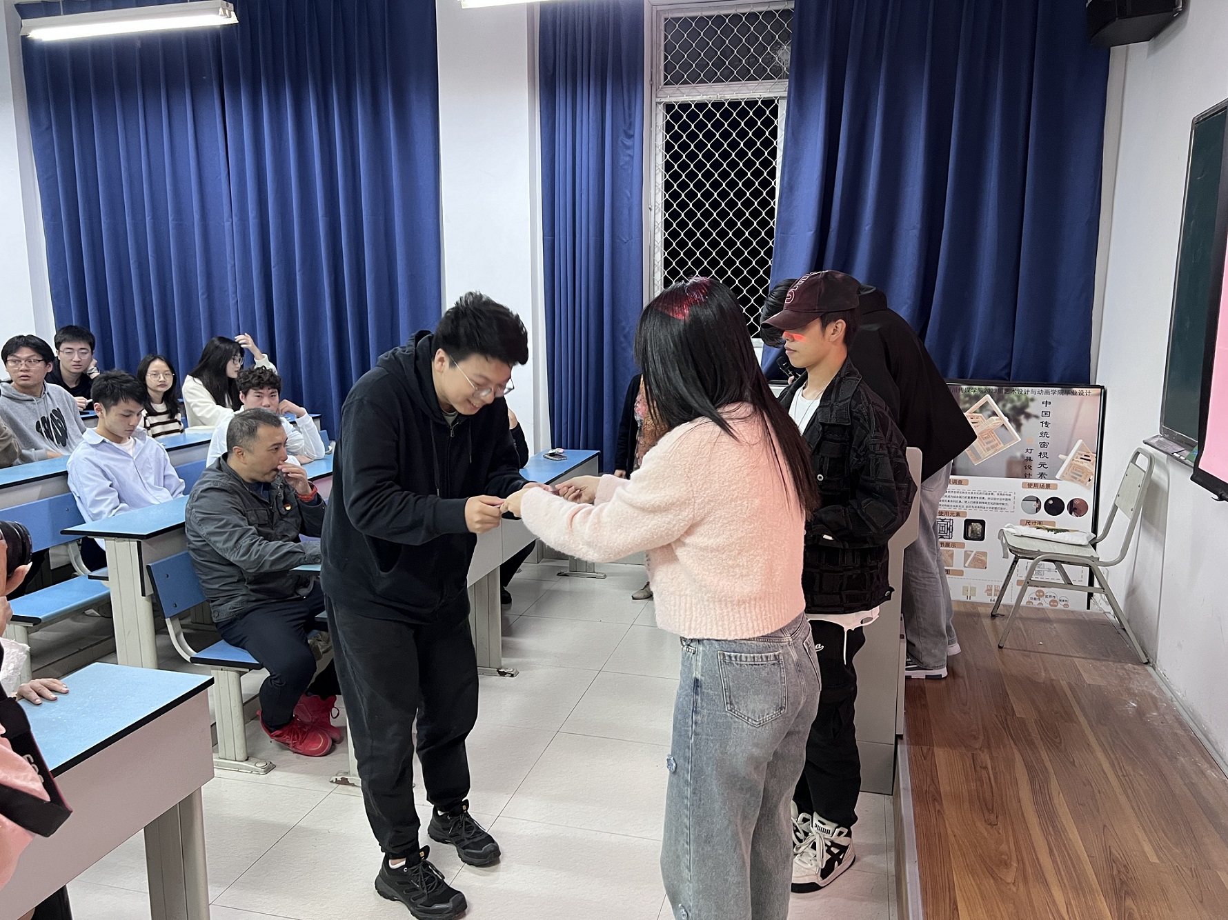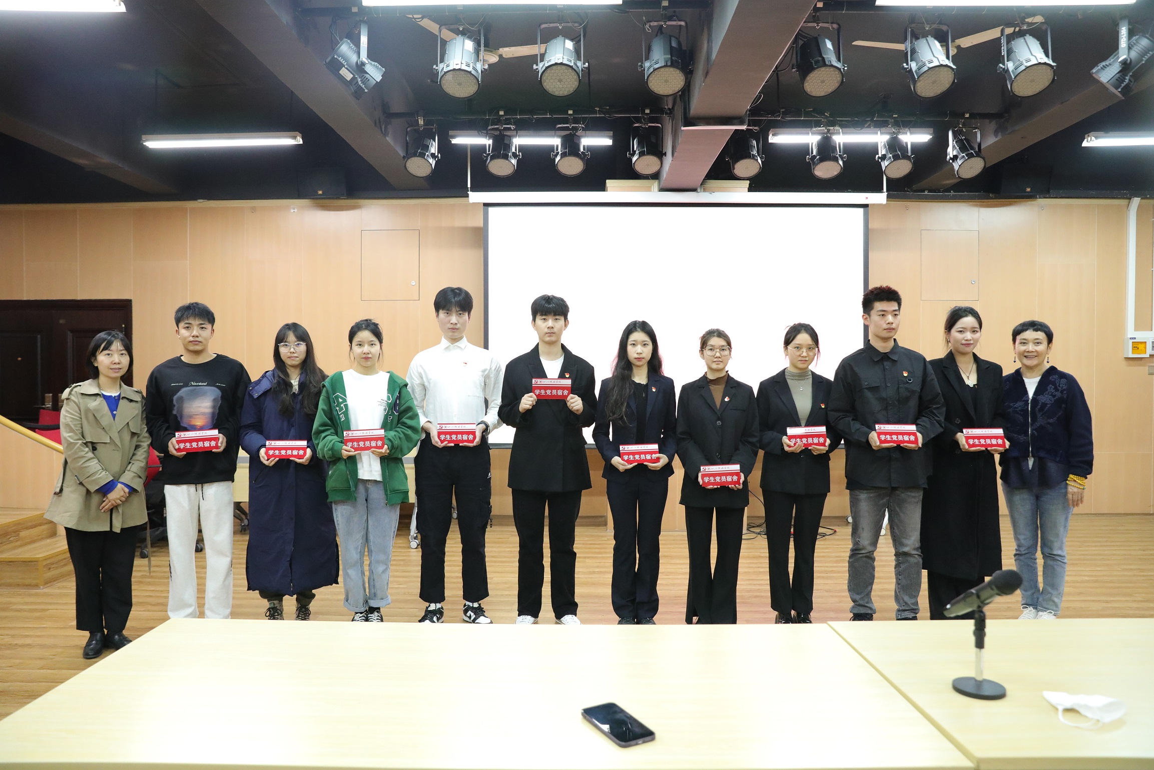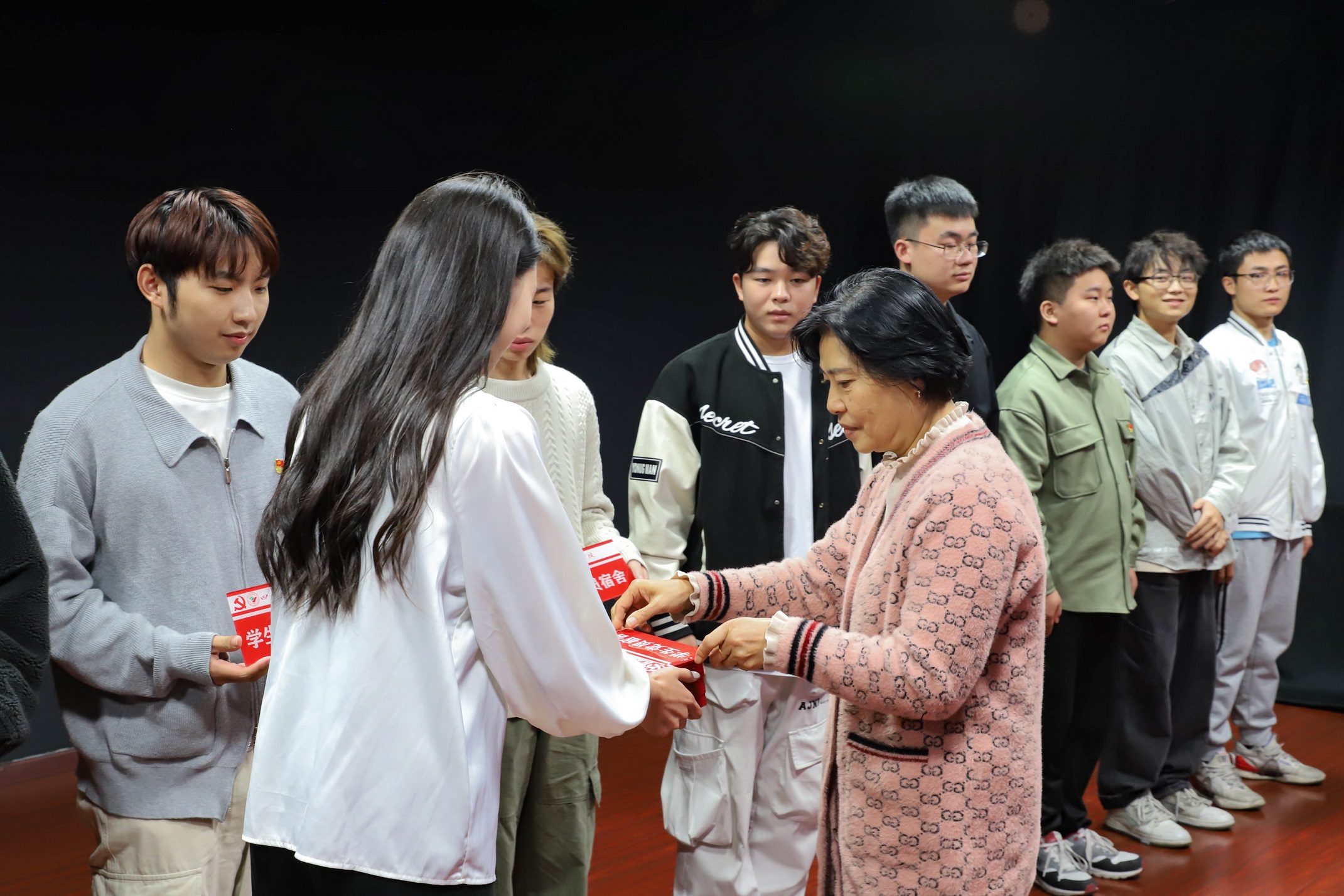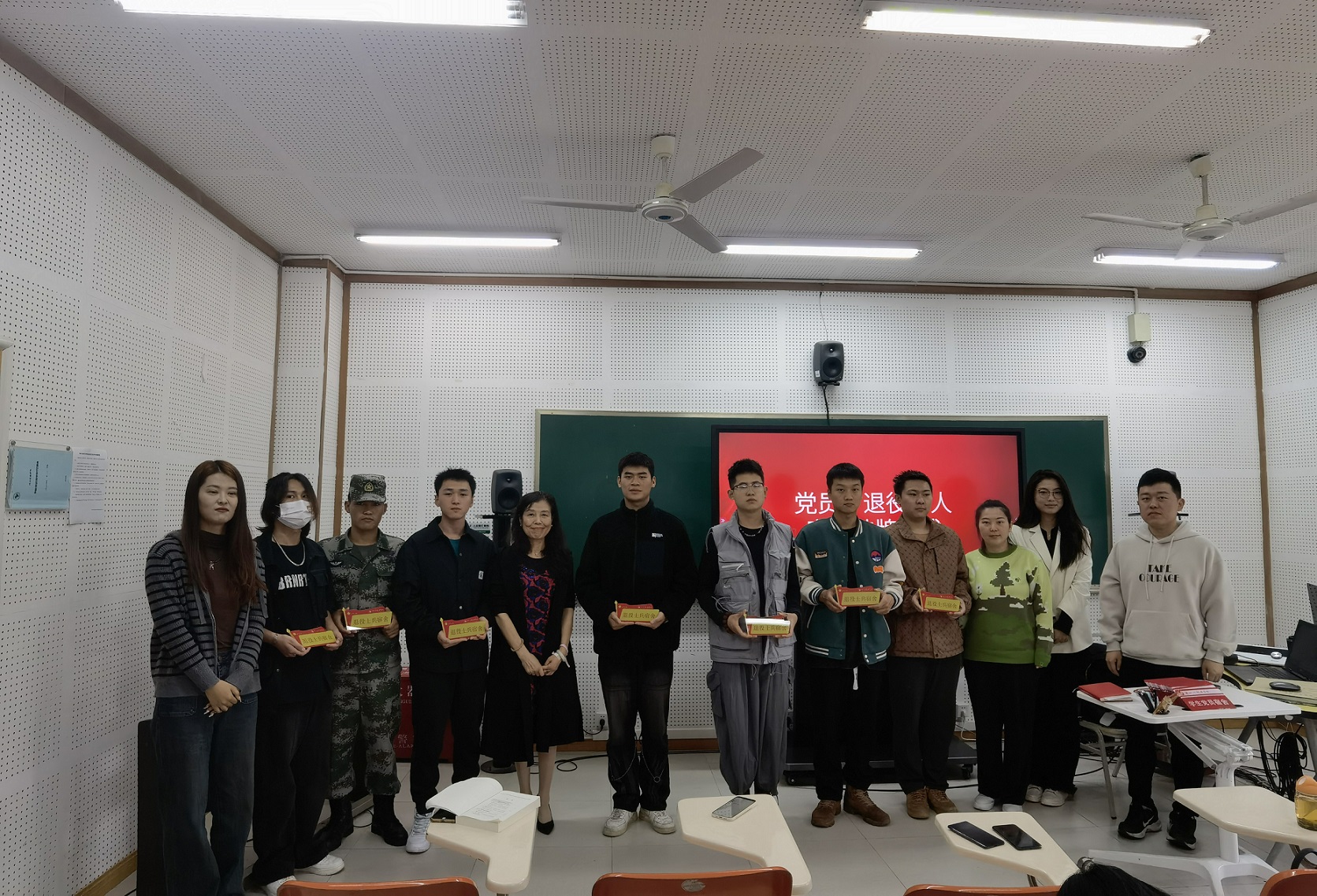 在充满荣誉感的氛围中,各院系部向那些在宿舍管理、卫生环境等方面表现突出的学生党员与退役士兵宿舍代表,颁发了精美的寝室门牌。彰显着他们在宿舍管理、卫生环境等方面的优秀表现。