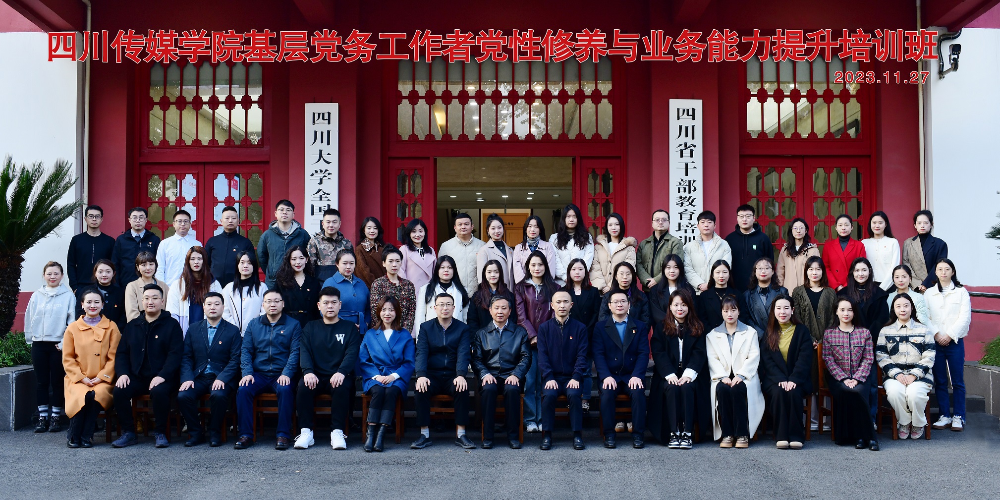 为深入学习贯彻习近平新时代中国特色社会主义思想,全面贯彻落实习近平总书记关于教育的重要论述,结合我校党员队伍建设和党员学习需要,引导高校党员干部增强加快建设教育强国的责任感、使命感、紧迫感,站在教育强国建设全局高度推动学校高质量发展取得新成效,2023年11月27日至29日,我校组织了部分基层党务工作者赴四川大学全国干部教育培训基地参加党性修养和业务能力提升培训班。