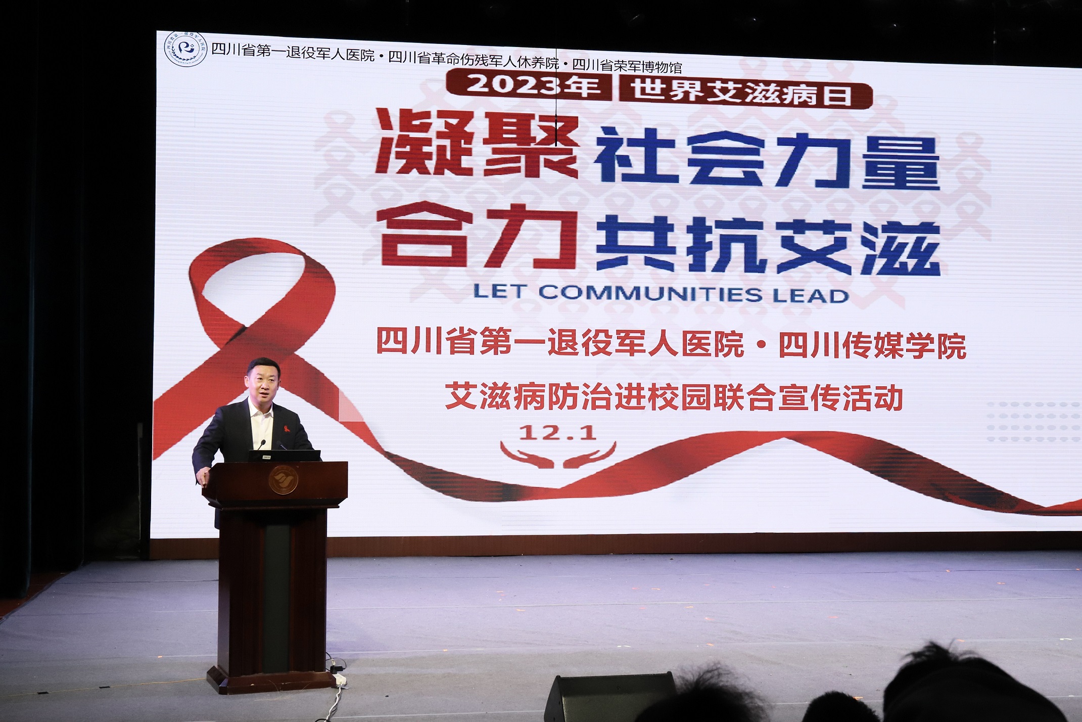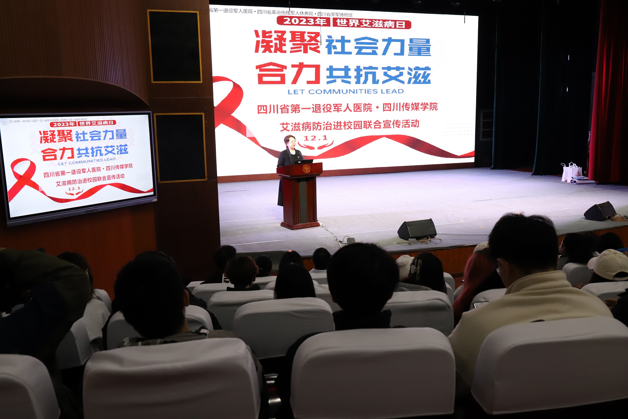 2023年12月1日,在第36个世界艾滋病日来临之际,四川省第一退役军人医院携手四川传媒学院,开展了一场艾滋病防治进校园的讲座。此次讲座紧扣今年全国宣传主题“凝聚社会力量,合力共抗艾滋”。提高青年学生对艾滋病的认知水平,增强他们的防范意识和自我保护能力。