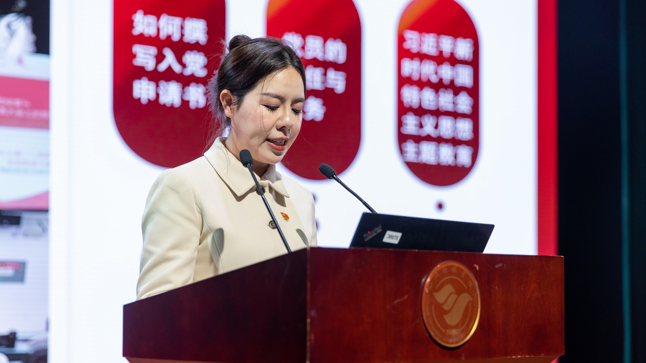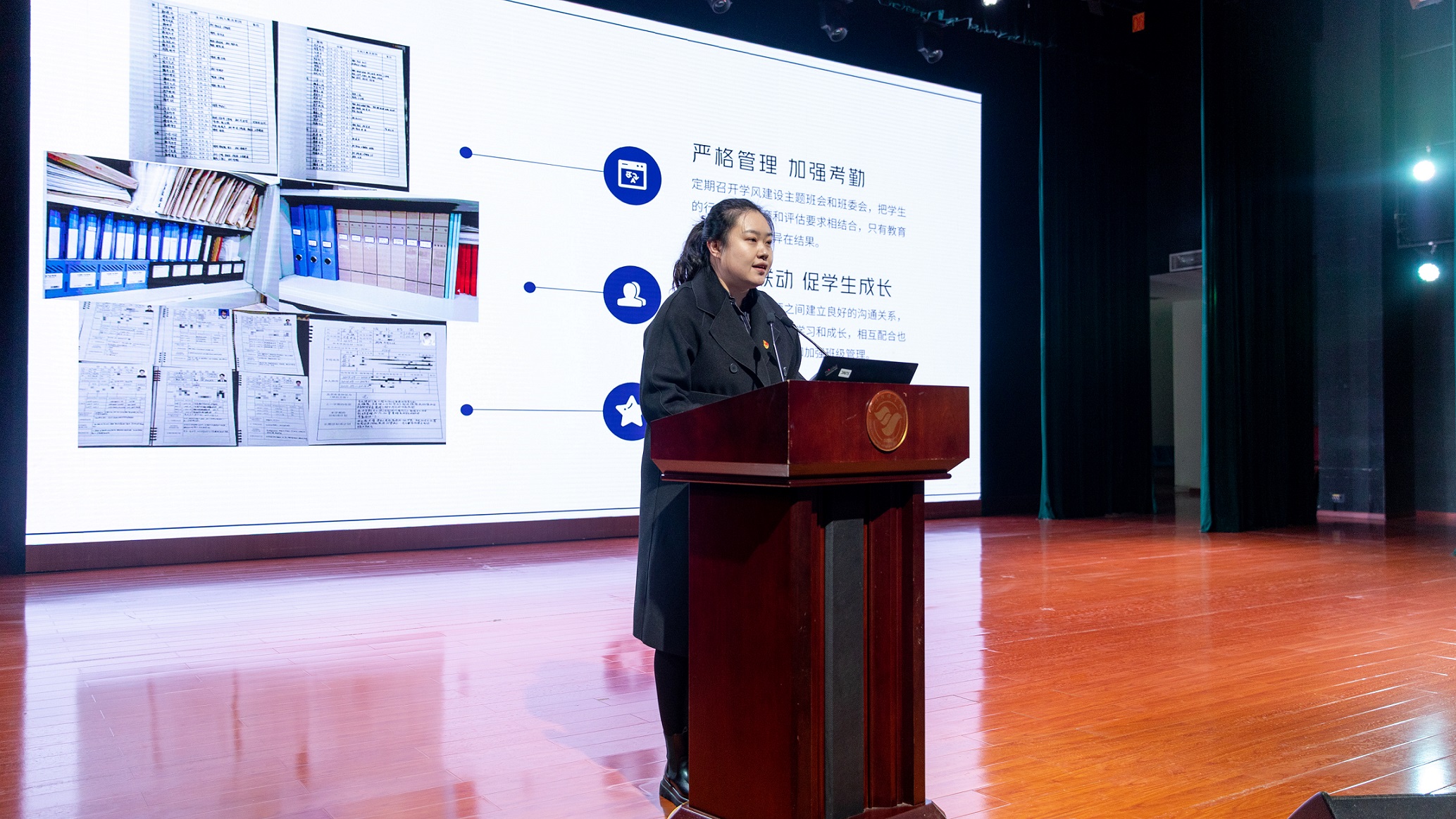 随后,有声语言艺术学院党委书记卢桂萍、国际教育学院党总支书记董佳、航空系党总支书记秦玺分别上台交流发言,他们结合自身的工作实践,深情并茂地分享了在学生管理、党建工作等方面的经验和做法。他们的分享也为其他院系部提供了有益的借鉴和启示。这些经验和做法不仅体现了学校对学生工作的重视和投入,更展现出学校在培养优秀管理干部方面的坚定决心和卓越能力。