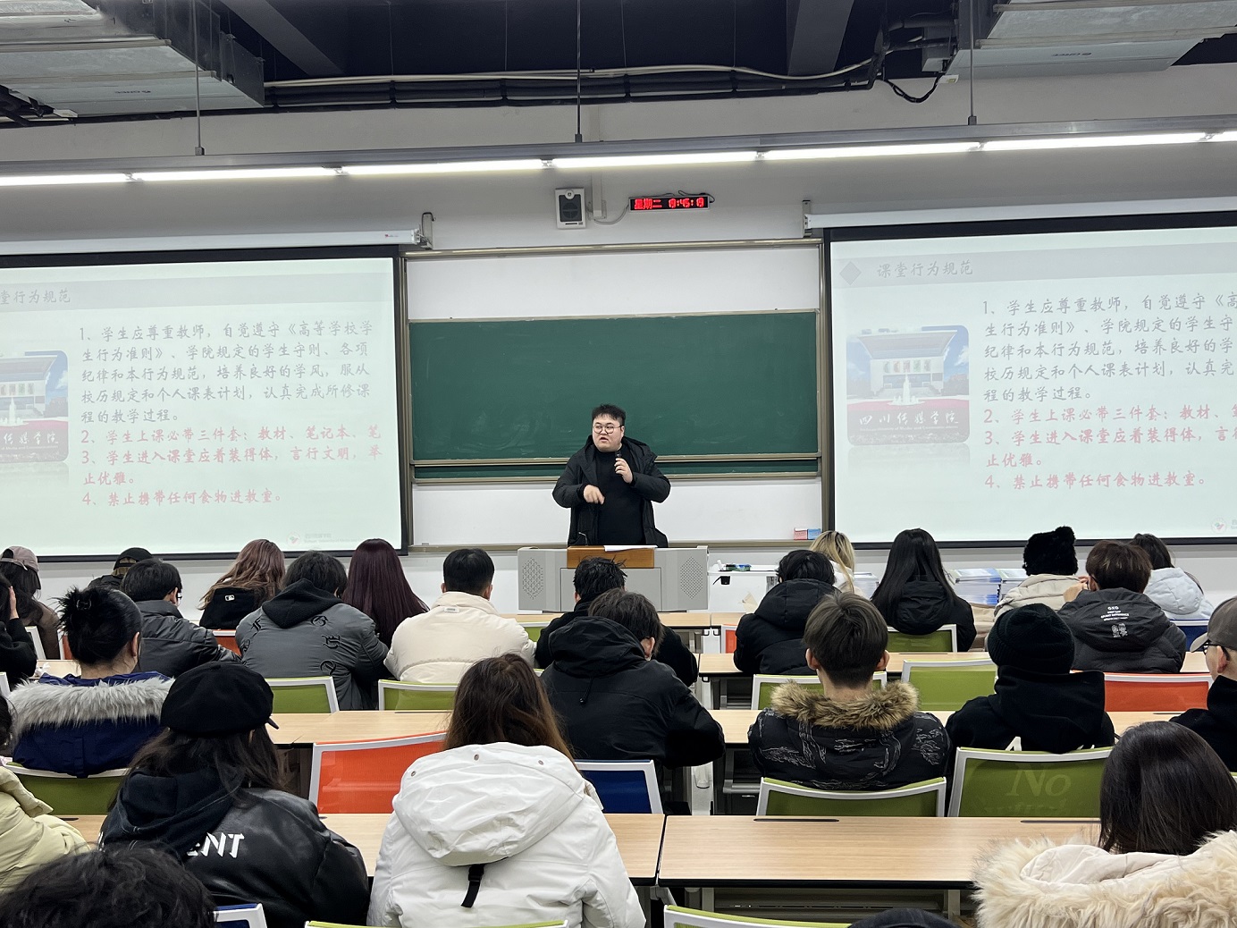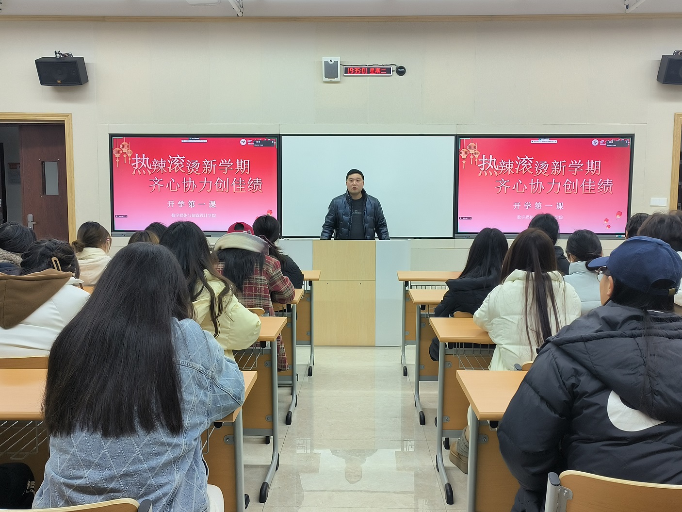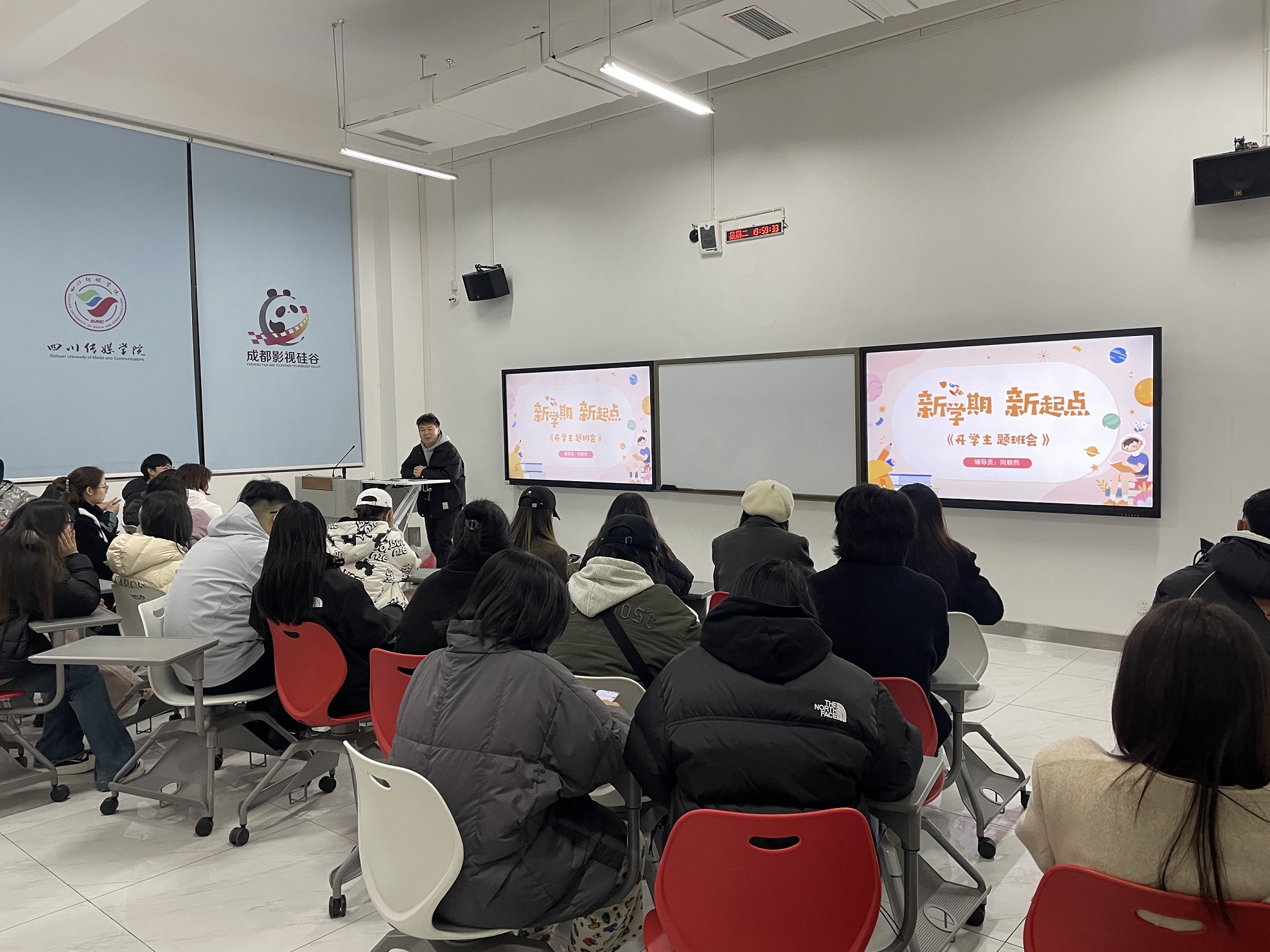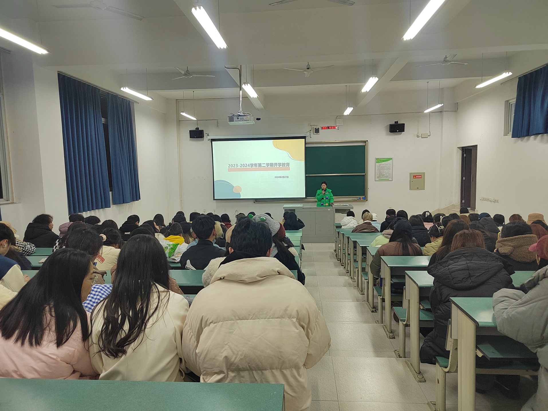 新学期的第一次班会,也是各位同学们的开学第一课。在班会上,辅导员老师向同学们介绍了学校近期的安排,包括教学、补缓考、重修课程、课表解读等等。结合假期国内发生的两起重大火灾事故,各位辅导员老师也将安全教育作为开学第一课的核心内容进行讲解。