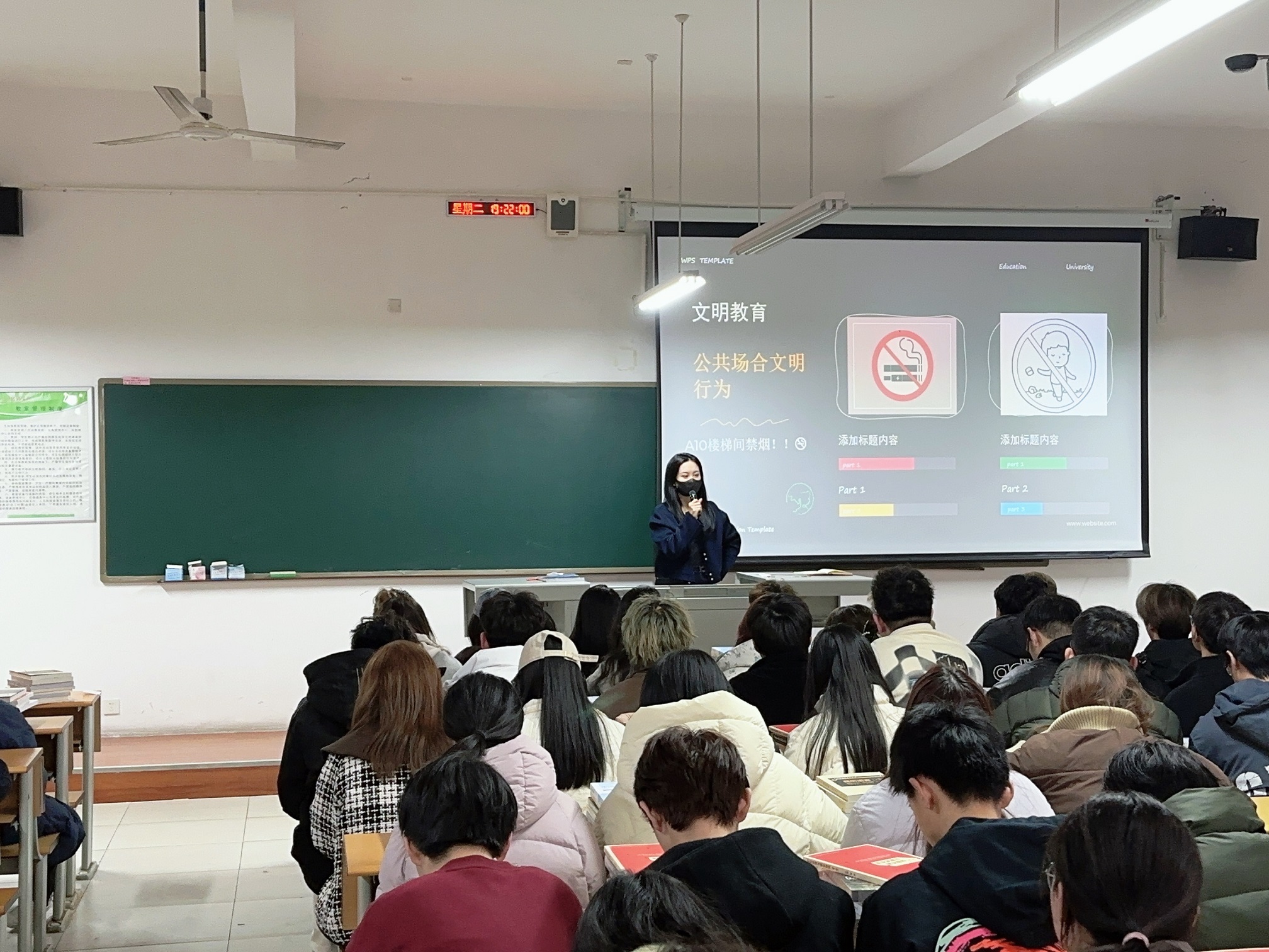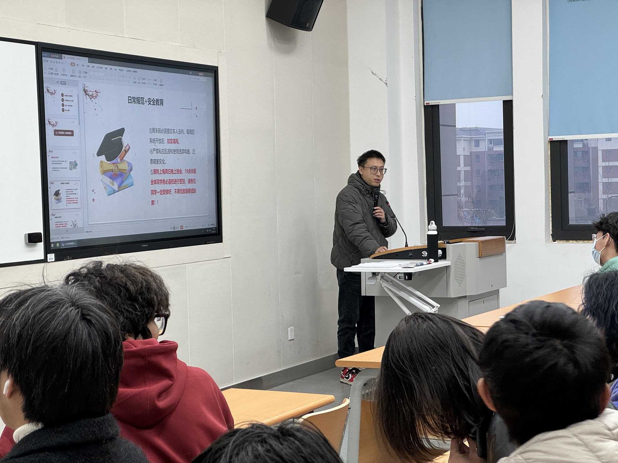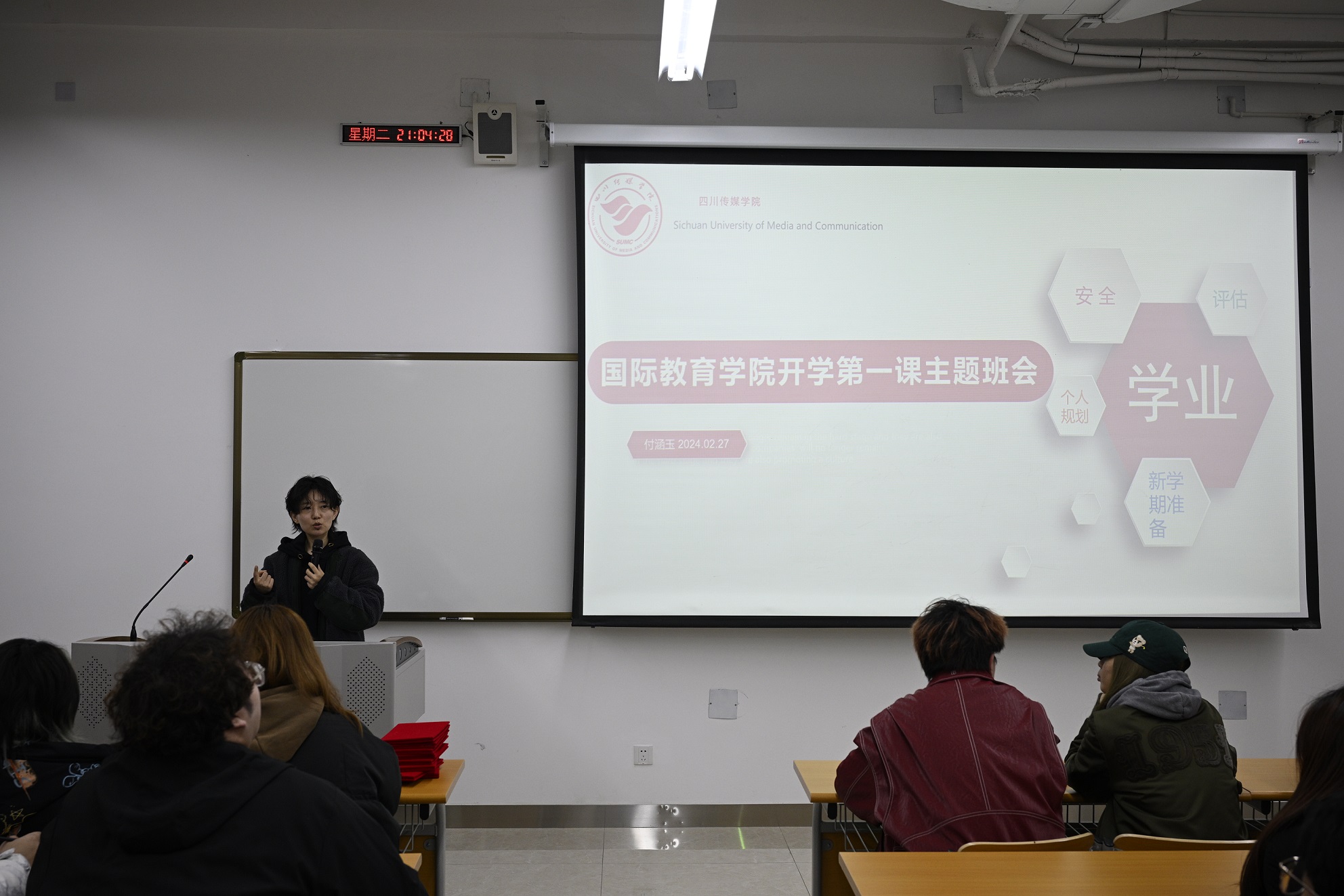 同时,在本学期的第一次班会上,辅导员老师们纷纷将学校“整改复评”工作也作为一个要点,为同学们解答了在此项工作当中,作为学生,应该要做些什么,做好什么。