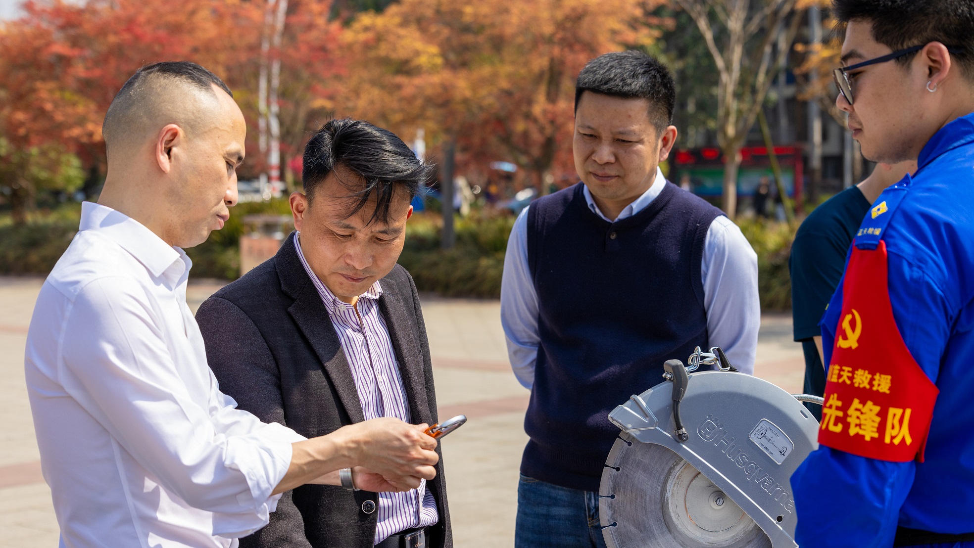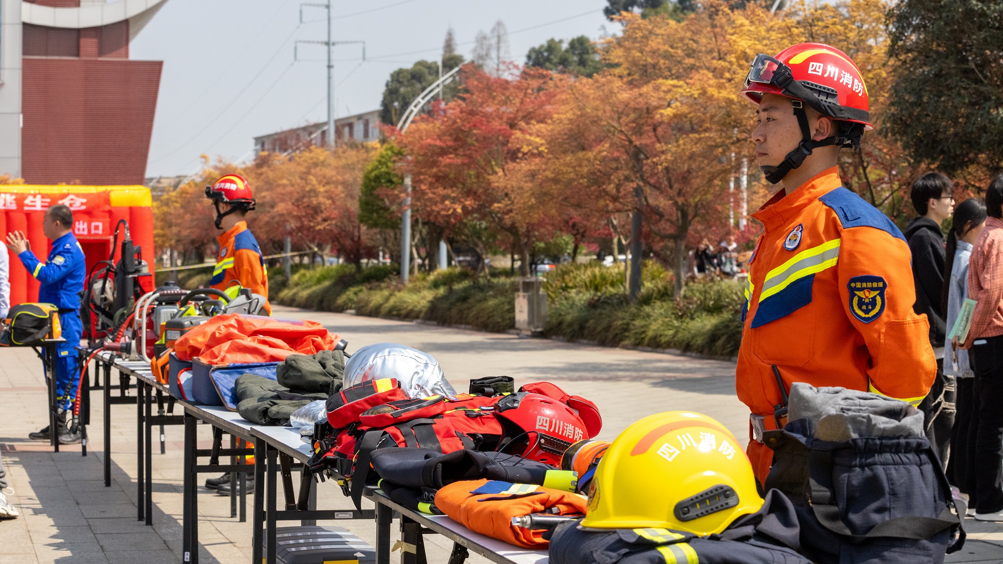 消防装备展示区由郫都区消防大队消防员给师生员工展示了雷达生命探测仪、音视频探测仪、防护服、遥控水炮、破拆器材等特种救援装备,同时向师生科普了消防产品知识,详细讲解了各类常见消防产品的使用范围、结构部件、性能参数、使用方法、真伪辨别等知识,同时也邀请师生“零距离”体验消防科技装备。