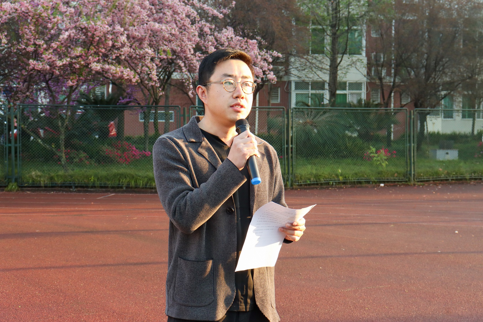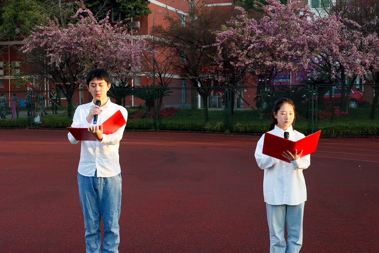 升旗仪式结束后,编导艺术学院学生代表朗诵稿件《青春》,倡议同学们以小我之梦融中华大梦,共筑时代梦想,以卓越广编人的姿态向未来发声。学生代表带领全体老师和同学们庄严宣誓,宣誓完毕后,编导艺术学院分党委书记王禹明在国旗下作了讲话,讲话中强调希望全体师生要牢固树立主人翁精神,有坚定的理想信念,时刻以饱满的精神状态贡献自己的青春力量。