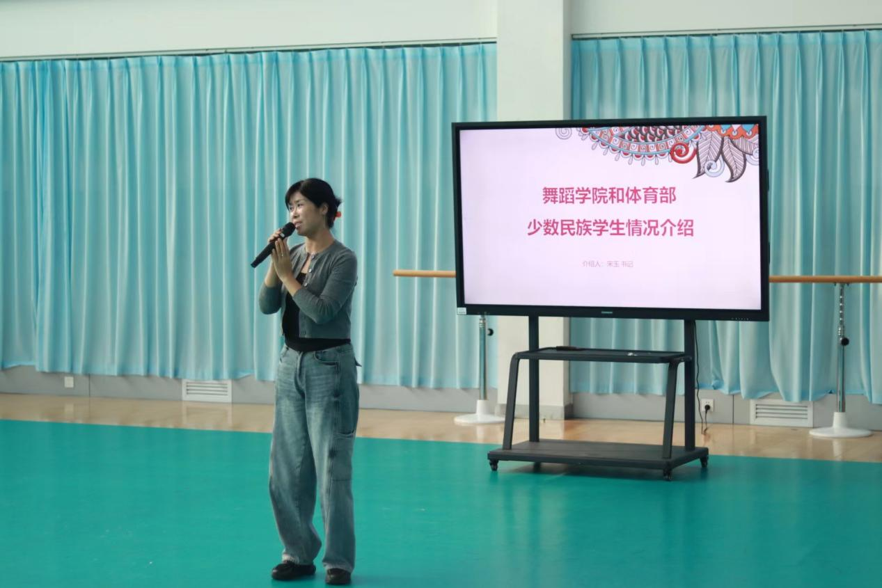 活动伊始,由舞蹈学院党委书记宋玉介绍了舞蹈学院少数民族学生相关情况。在舞蹈学院和体育部大家庭中,少数民族学生扮演着不可或缺的角色,这些少数民族学生带来了各自独特的文化背景和丰富的传统知识,他们在这里学习、交流,共同成长,为学校注入了多元文化的活力。