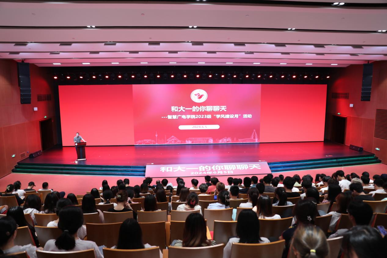 2024年6月5日,2024年高考前夕,智慧广电学院在西区学术报告厅成功举办学风建设月系列活动“和大一的你聊聊天”报告会。