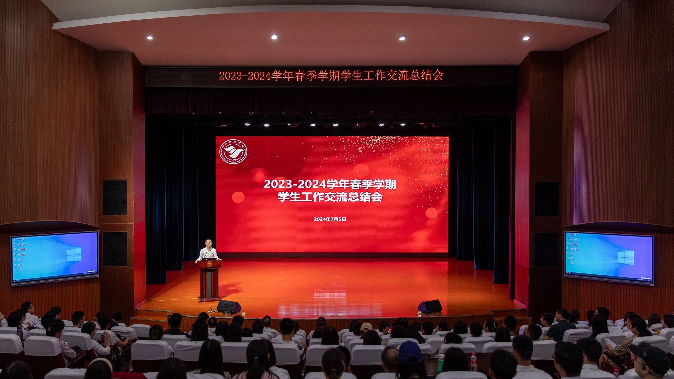 2024年7月5日,四川传媒学院在艺术交流中心召开了2023-2024学年春季学期学生工作交流总结会。此次会议旨在总结过去一学期的学生工作成果,分享宝贵经验,查找不足,进一步推动学校学生工作的全面发展。党委书记何建平,理事长张书玉,党委副书记、副校长刘黎,党委副书记、纪委书记陈俊明、马克思主义学院院长赵万江、保卫工作部(处)长黄华、后勤管理处处长谢磊等领导参加了交流会,另外,学生工作部(处)全体、各院系部党团书记、全体辅导员也参加了会议。会议由党委常委、学生工作部(处)唐杰主持。