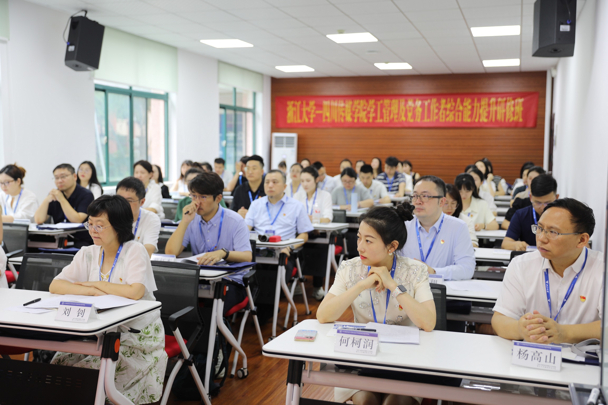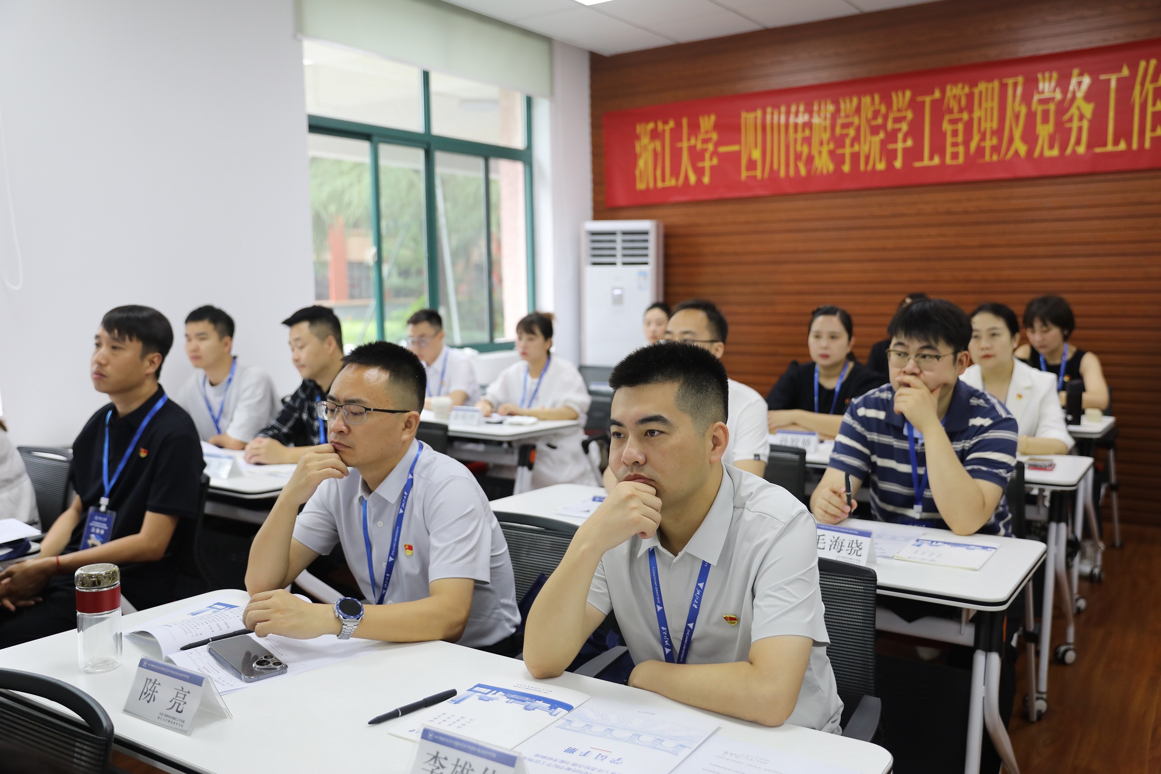 2024年7月15日上午,四川传媒学院学生工作与党建工作骨干一行走进美丽的浙江大学华家池校区。在热烈的氛围中,浙江大学—四川传媒学院学工管理及党务工作者综合能力提升研修班正式拉开帷幕。