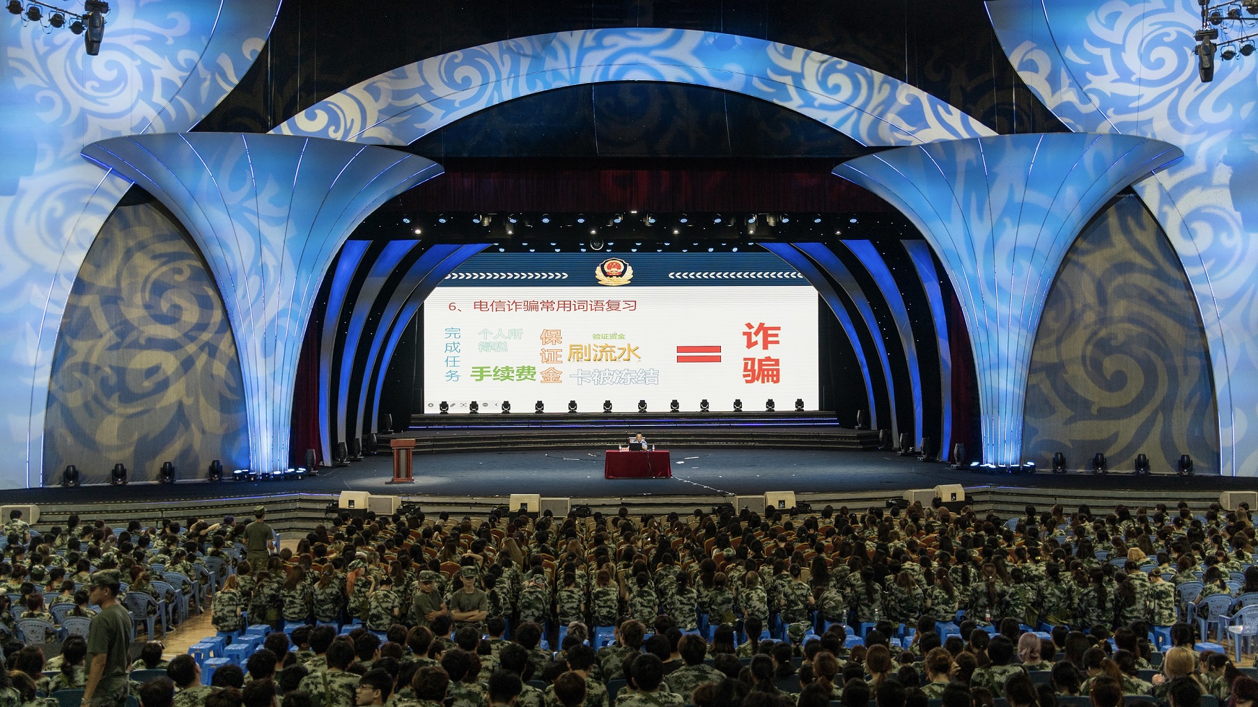 场馆内,学生们身着整齐的迷彩服,精神抖擞地聆听讲座。胡所长结合实际案例,深入浅出地向学生们介绍了当前电信网络诈骗的常见形式,如网络购物诈骗、网络贷款诈骗、假冒公检法诈骗等。通过一个个真实的案例,学生们深刻认识到了电信网络诈骗的危害性和隐蔽性。