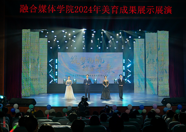 融合媒体学院积极响应学校“博学笃行,徳艺双馨”的校训,秉持着“以美育人”的教学理念,组织师生在大型演播厅开展了一场美育成果展示展演。舞台上的融媒青年学子朝气蓬勃,熠熠生辉。丰富多彩的节目形式,向师生们呈现了一场视觉与听觉的盛宴。此次活动由老师和学生们共同创作,不仅展示了师生们在美育领域的学习与创作成果,也进一步提升了校园文化的内涵与深度。