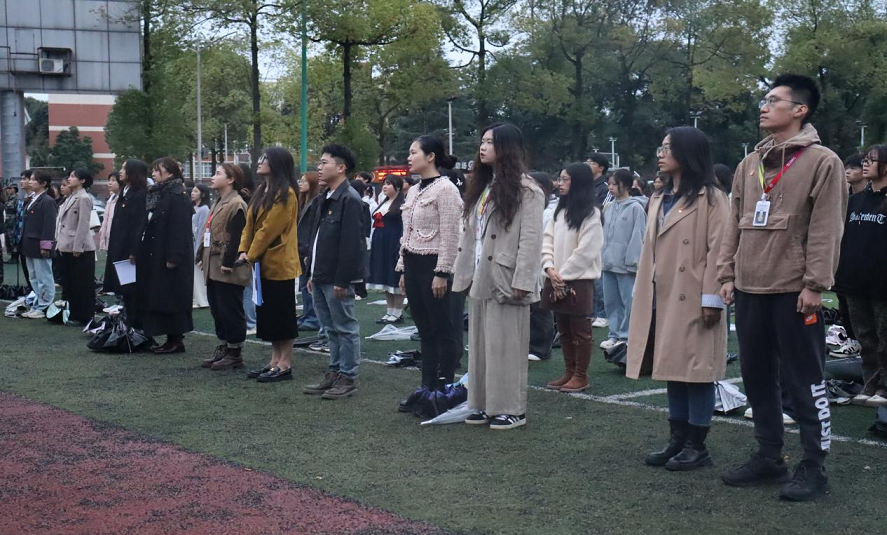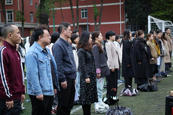 2024年11月4日清晨,四川传媒学院2024-2025学年第一学期第10周升旗仪式在东区操场如期举行。细雨绵绵,融合媒体学院的师生们依旧精神抖擞地齐聚操场,共同迎接五星红旗的冉冉升起。本次升旗仪式由融合媒体学院分党委书记秦玺主持。