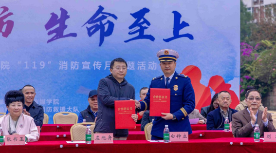 为强化消防救援单位与学校间的安全协作与联动机制,积极推进平安校园建设,校长左旭舟和郫都区消防救援大队大队长白钟立共同签署消防安全共建共享协议。