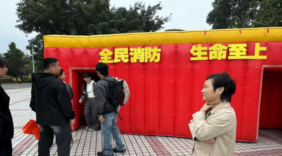 此次活动还设置了2024年校园消防安全主题作品征集大赛获奖作品展示区、消防应急救援器材展示区、模拟逃生帐篷体验区和云梯消防车体验区。这种消防安全教育体验活动以沉浸式体验为主,互动性强、寓教于乐,让同学们“零距离”接触消防、学习消防、感受消防。