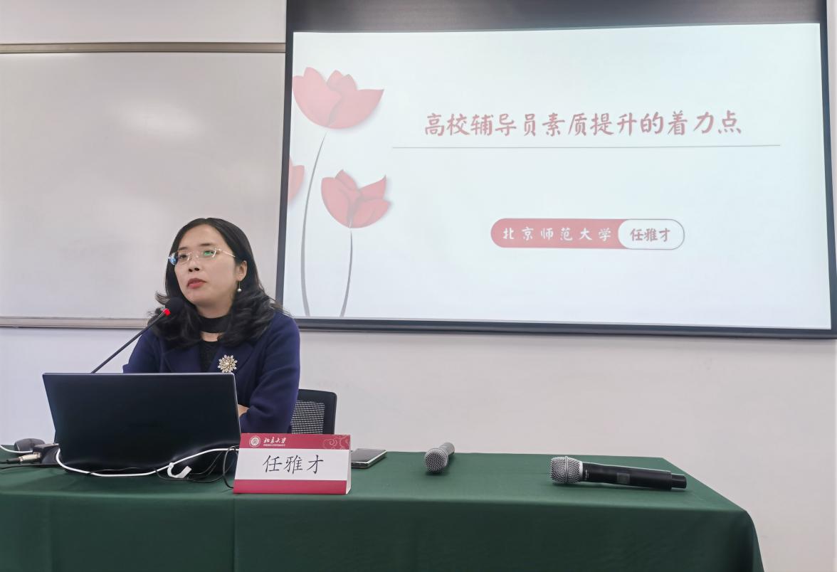 11月16日下午,北京师范大学国际中文教育学院党委副书记、全国首批最美高校辅导员、第八届全国高校辅导员年度人物任雅才老师带来了《高校辅导员素质能力提升的着力点》的精彩讲座,分析了辅导员在日常工作中的常见问题及解决策略,提升自身素质的五个着力点:“最美人物”“向内发力”“向外延伸”“向上生长”“向下扎根”,鼓励辅导员老师提升自己科研能力,抓住可以助力自己和学生成长的机会。