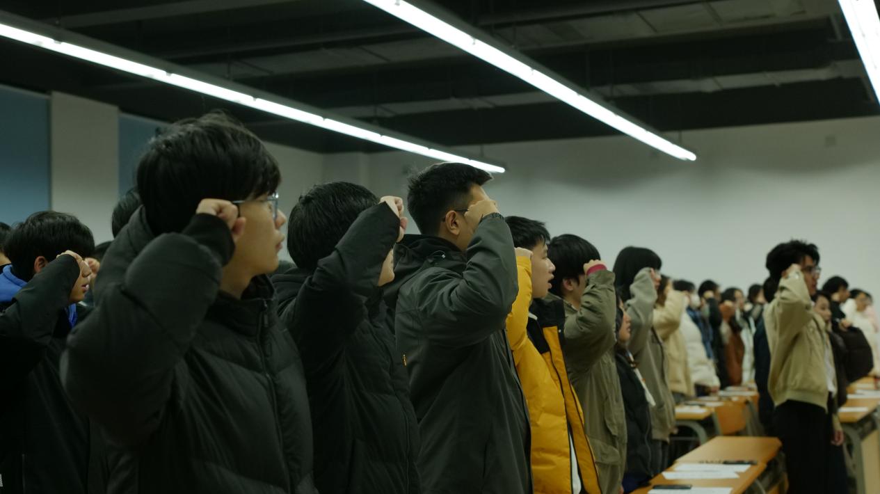 朗读结束后,部分共青团员重温了入团誓词。在庄严的誓词声中,同学们再次回归了入团时的初心和使命,表达了对党和国家的忠诚与热爱,以及对宪法和法律的坚定信仰和遵守。
