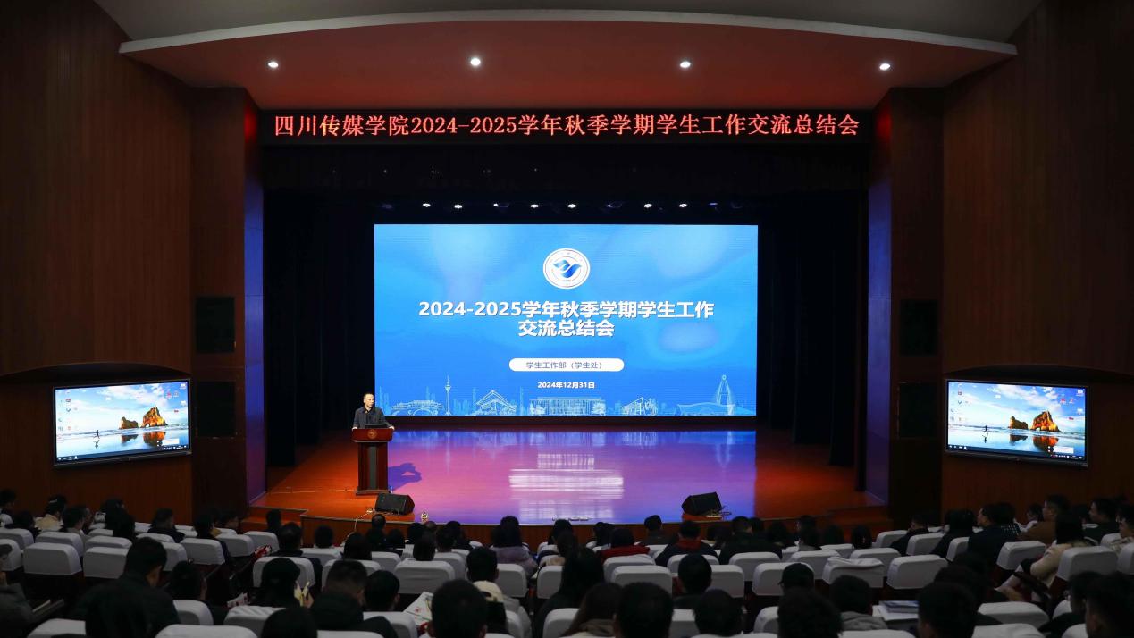 2024年12月31日,四川传媒学院2024-2025学年秋季学期学生工作总结会在艺术交流中心顺利召开,会议聚焦学生管理、党建引领、学风建设等核心议题,旨在通过经验分享与规划展望,推动学生工作高质量发展。会议由党委常委、学生工作部(处)长唐杰主持,校党委书记何建平、副校长刘黎、校团委书记周皓翔、保卫工作部(处)长黄华、心理健康中心主任徐建奇出席会议,学工部全体成员、各院系部党委书记、副书记、全体辅导员老师也参加了会议。