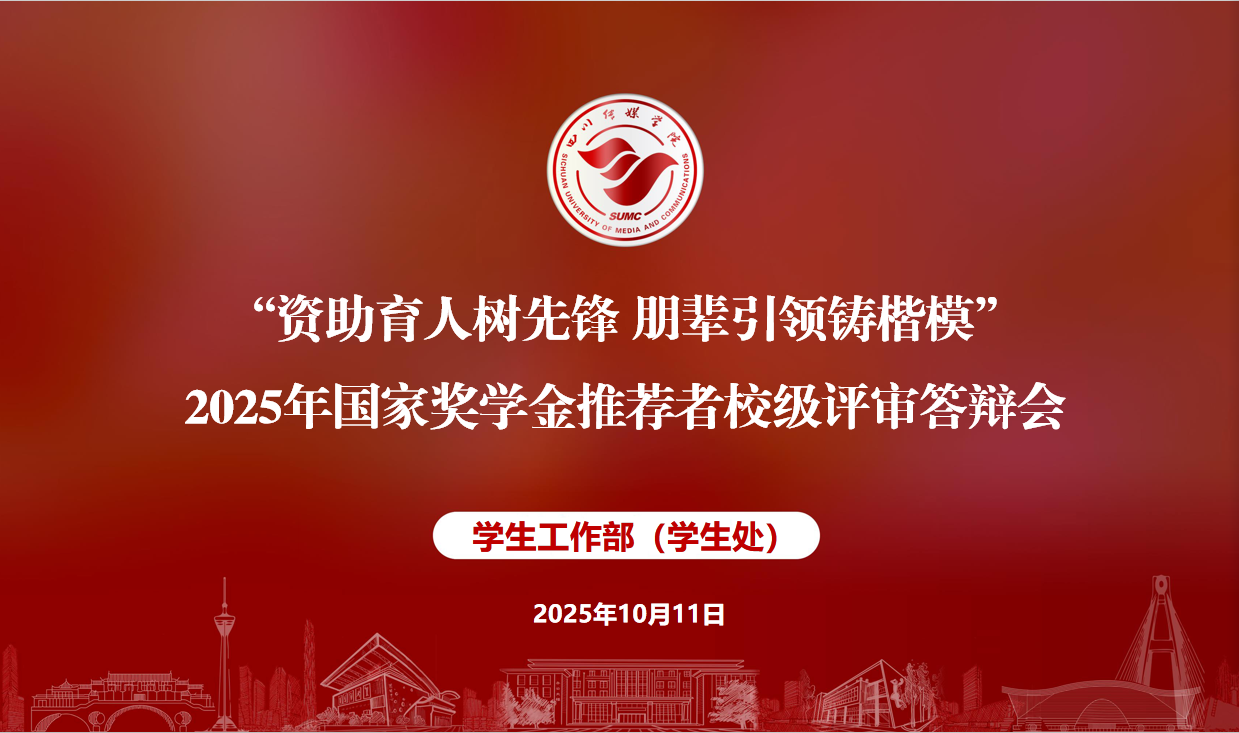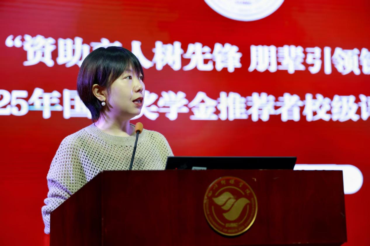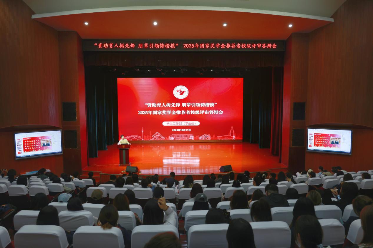 为充分发挥国家奖学金的育人导向与激励作用,展示优秀学子的卓越风采,树立先进典型,营造见贤思齐的良好校园氛围,按照《四川省教育厅关于做好2025年高校国家奖助学金评审工作的通知》(川教函〔2025〕275号)文件要求,我校于2025年10月11日在学校艺术交流中心隆重举行“资助育人树先锋 朋辈引领铸楷模”2025年国家奖学金推荐者校级评审答辩会。党委常委、校长助理、资助工作领导小组副组长唐杰,学工部部长、国家奖助学金评审委员会组长张颖出席答辩会,各院系党委、党总支书记,及各院系学生代表现场参加。