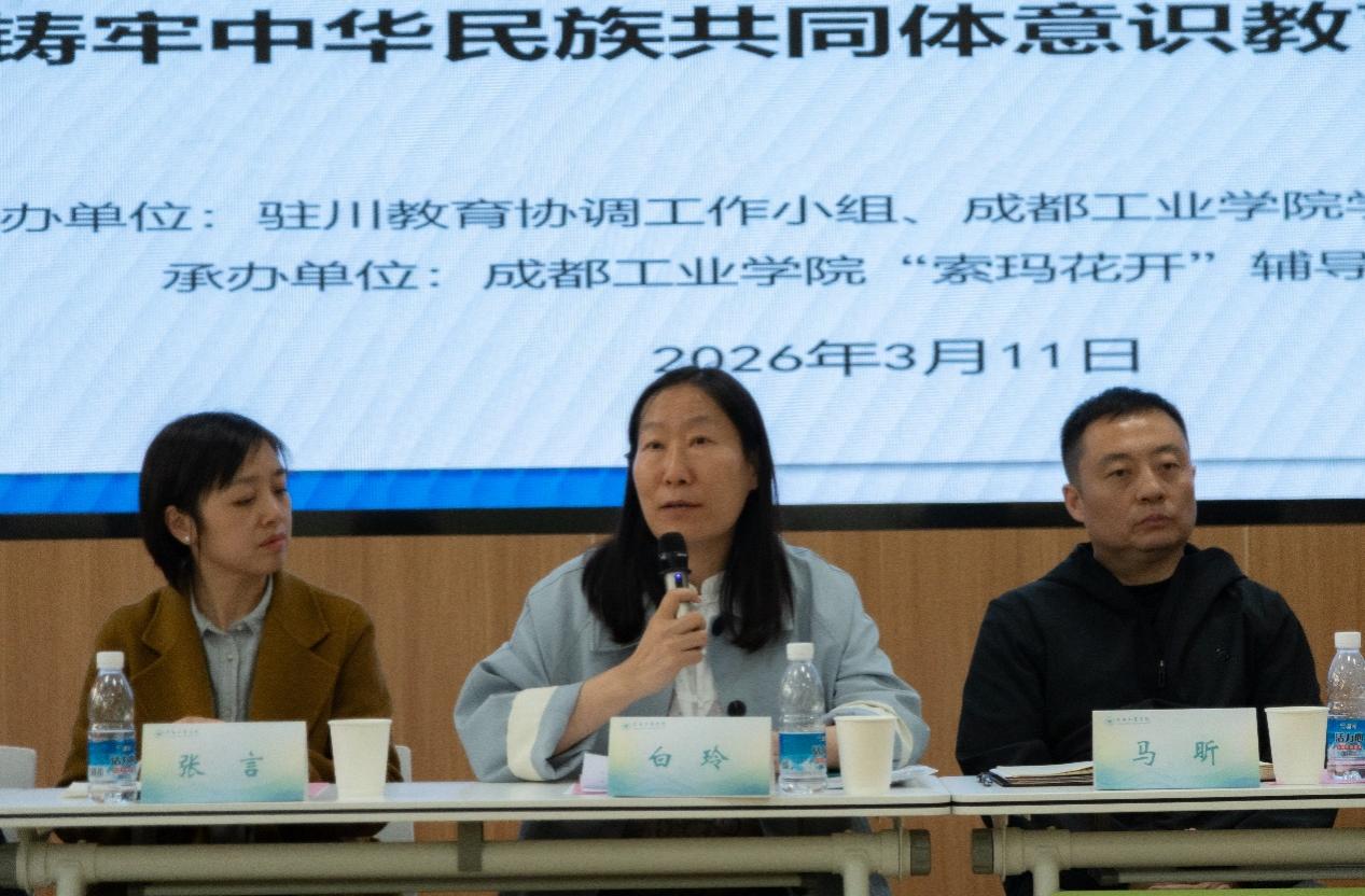 教育厅宣传思想与统战工作处副处级干部、驻川教育协调工作小组组长白玲结合座谈内容与师生代表交流体会,她指出青年学生要以精神为指引,以故事传温情,以担当践使命,牢记中华民族共同体意识是国家统一之基、民族团结之本、精神力量之魂。勤学善思、锤炼品格、传承文化、奉献社会,以青春之同心筑民族之同心,以奋斗之姿圆民族复兴伟大梦想。
